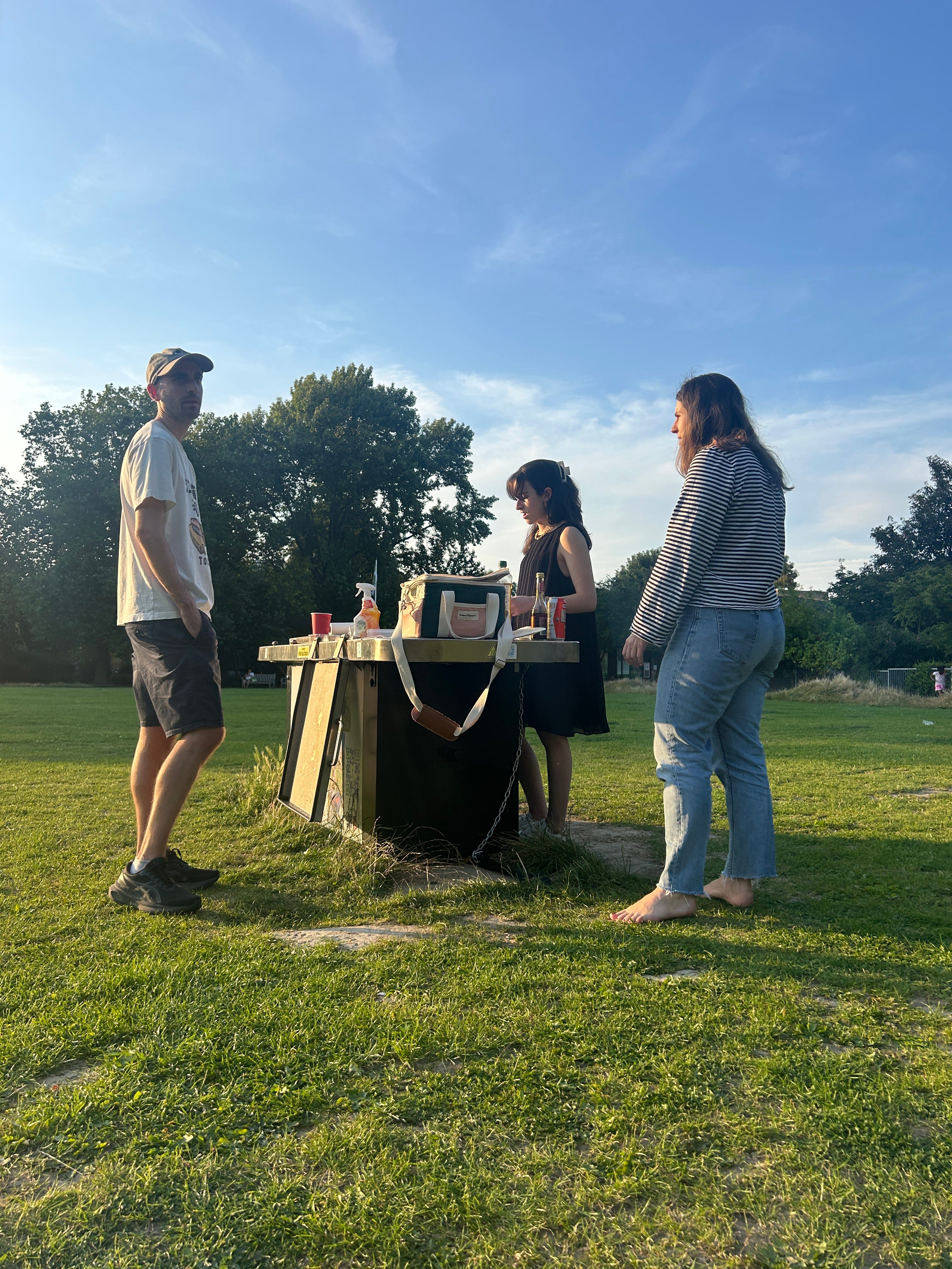 We kicked off our London adventure with a bit of divide and conquer. While Nicky indulged in some retail therapy along Regent Street, Ben embarked on a pilgrimage to the hallowed grounds of Arsenal's Emirates Stadium, returning with more merchandise than sense. Reuniting in Hampstead Heath, we shared a lovely lunch with Ben's friend Andy, who miraculously found time in his busy schedule to entertain us commoners. As London decided to cosplay as a tropical paradise, we strolled through the Heath, dodging impromptu pond swimmers and accidentally stumbling upon Ricky Gervais - because apparently, that's just what happens in London. Our evening took a turn for the culinary when we organized a park barbecue with friends, unwittingly entering the realm of competitive sausage cooking. While most of us emerged unscathed from this gastronomic roulette, poor Adam may have drawn the short straw - or in this case, the undercooked sausage. Despite the potential food poisoning fiasco, we chalked it up as a successful day in the books of our British escapade.