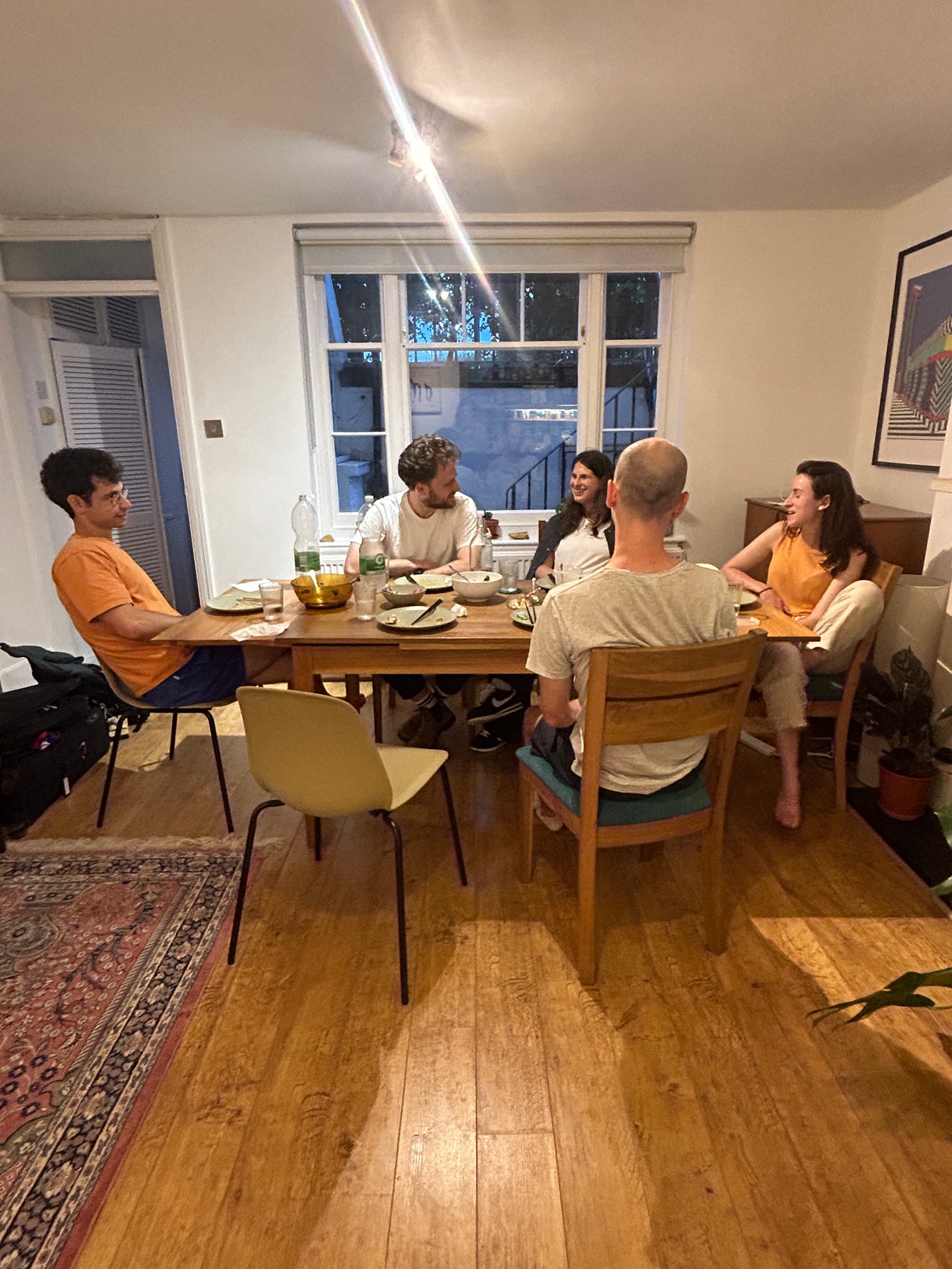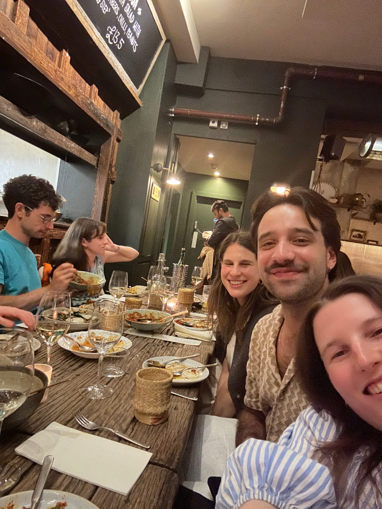 We embarked on a whirlwind tour of London's greatest hits, starting with a leisurely morning coffee that would make any Brit proud. We then headed off to Borough Market, where we indulged in a salt beef bagel that could make a New Yorker weep. We then played tourist bingo along the South Bank, ticking off the Tate Modern and the London Eye faster than you can say "queue." As evening approached, we traded our walking shoes for our eating pants and headed to a Shabbat dinner that would make any bubbe kvell. Our hosts, Andy and Tom, treated us to a Middle Eastern feast. The night culminated in a collective "ooh" and "aah" session over the Paris Olympics opening ceremony. The journey home proved to be its own Olympic event, with closed train lines and elusive taxis, but we emerged victorious, if a tad sleepy. Ben, feeling every one of his years, muttered something about "not being as young as he used to be".