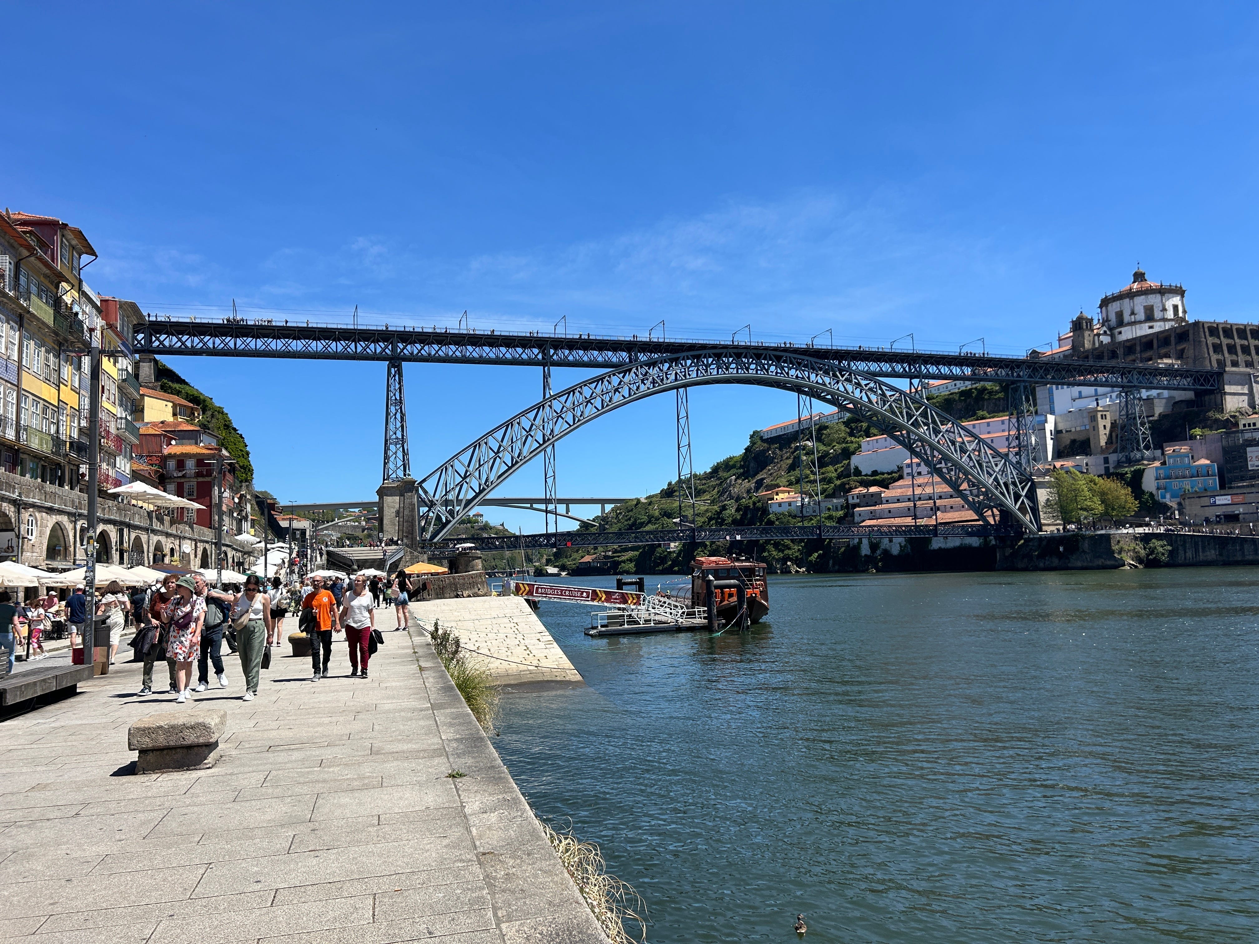 Our last full day in Portugal saw us exploring the heart of Porto. We started at the top of the city and meandered downhill through charming streets, stopping to shop and marvel at the sights. Highlights included a visit to a stunning old library, a peek at some ornate churches, and surprisingly, the world's fanciest McDonald's where we indulged in some very classy chicken nuggets. We crossed a bridge designed by the same genius behind the Eiffel Tower and covered over 20,000 steps, thoroughly earning our lunch at a touristy spot with so-so food. The weather was delightfully warm, perfect for our evening stroll along the waterfront. With no real lowlights, except maybe feeling a bit hot and underwhelmed by lunch, the day was a fantastic mix of culture, architecture, and a side of soccer during dinner.