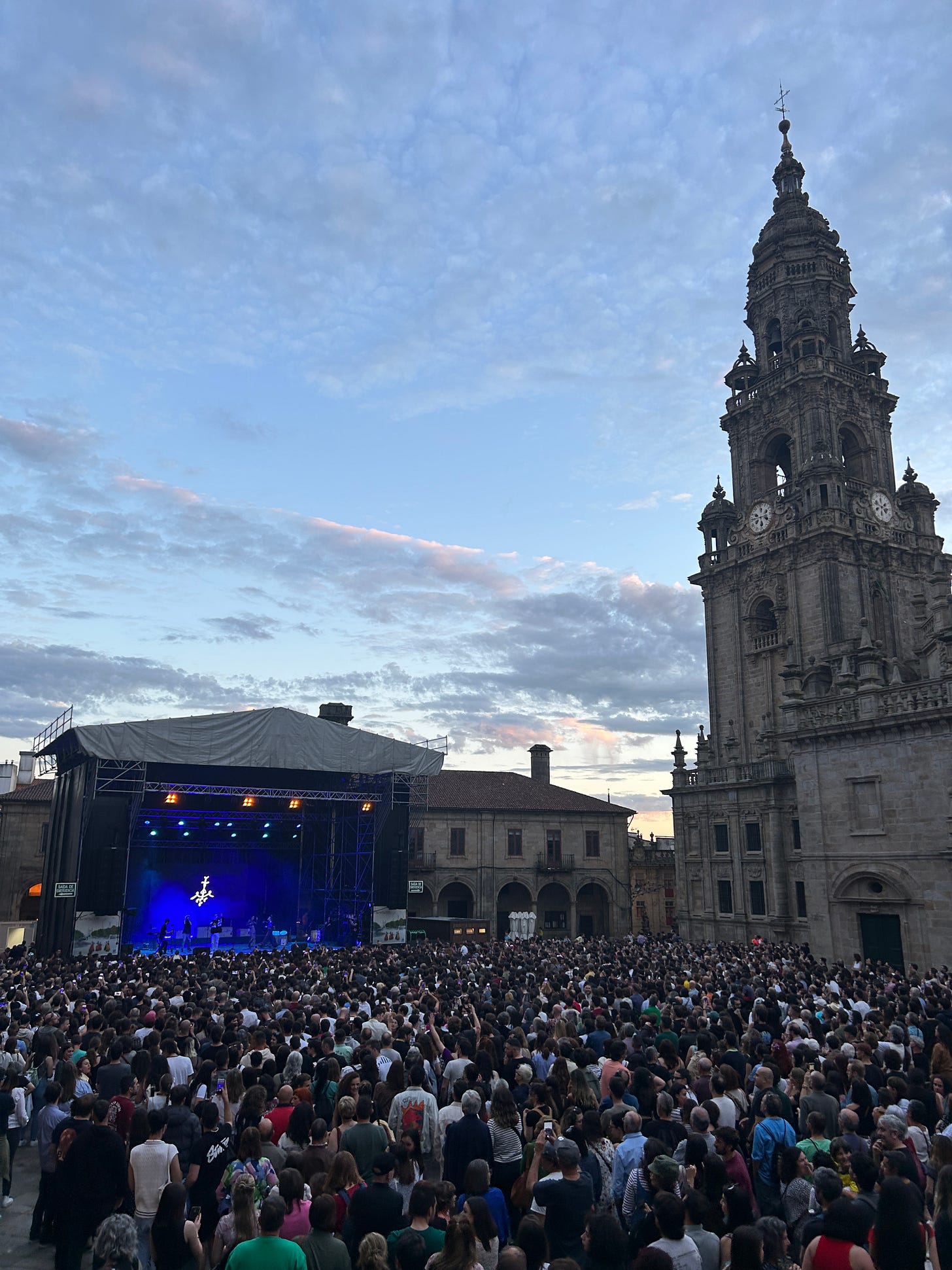 We bid farewell to Porto and embarked on a scenic drive to Santiago de Compostela, kicking off with a stop in Vigo for a beachside lunch that turned sunny just in time. With Ben at the wheel first and Nicky taking over the second leg, we reached Santiago and settled into our hotel before diving into the old town. Our evening was a whirlwind of cathedrals, bustling streets filled with pilgrims, and a surprise festival complete with food stalls and traditional dancing that looked hilariously like Irish step dancing. Dinner was an epic feast where we hilariously over-ordered, expecting tapas-sized portions but receiving full meals instead. The night ended on a high note with a vibrant musical performance in the square, blending modern pop with traditional tunes, and a joyful crowd that made us feel like part of the celebration.