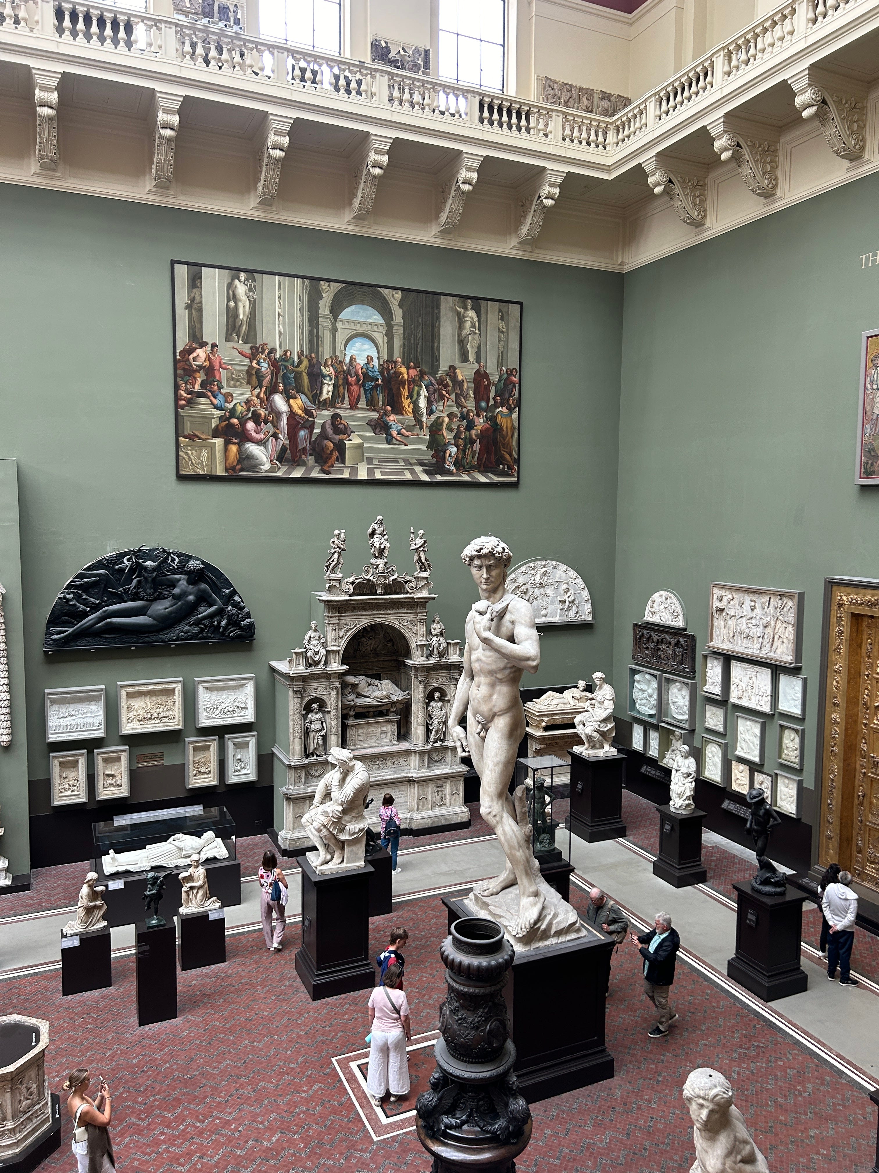 Our final day in London had us packing up our bags and squeezing in a last bit of culture before heading to the airport. We kicked things off with a visit to the Victoria and Albert Museum, where we pretended to be cultured while admiring statues, fashion exhibits, and, of course, the crown jewels—though no, we didn’t try on any tiaras (sadly). After lunch—some sushi to keep things light—we wrapped up our packing, said our goodbyes, and set off for Heathrow. The adventure wasn’t quite over, though, as we ran into Nicky’s friend Ruth at the airport, squeezing in one last catch-up over airport food before we boarded our flight. And now, 23 hours of economy class and questionable legroom await us—fingers crossed we survive!