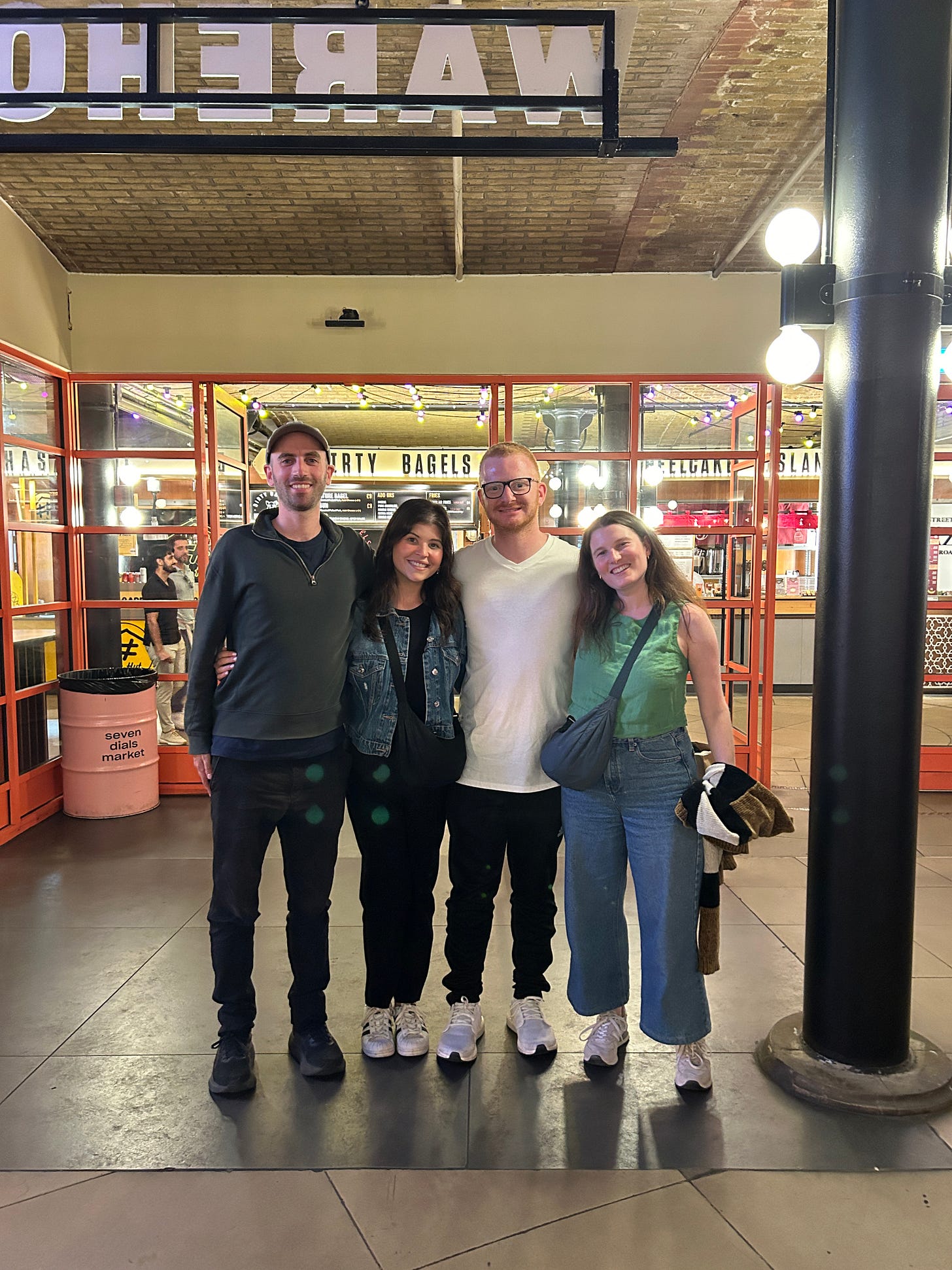 We kicked off the morning with a “half-English” breakfast at a local café, which left us wondering what the other half was supposed to be. After a leisurely stroll, we made our way to Hackney Wick to visit Gina and her shiny new apartment. The area had all the trendy vibes, with lunch by the canal under a convenient canopy while the quintessential British drizzle made its appearance. Back home for a brief pause, we were soon out again, heading to Covent Garden to catch up with Nicky's cousin Lauren and her fiancé Justin, who flew in from South Africa. It was Lauren’s birthday, so naturally, shopping and cake were in order. We all navigated the maze of Seven Dials Market for dinner, each going rogue with food choices, but reconvening for celebratory sweets. Wrapping up the day, we marveled at how much catching up can be squeezed into one afternoon without actually running out of things to talk about.